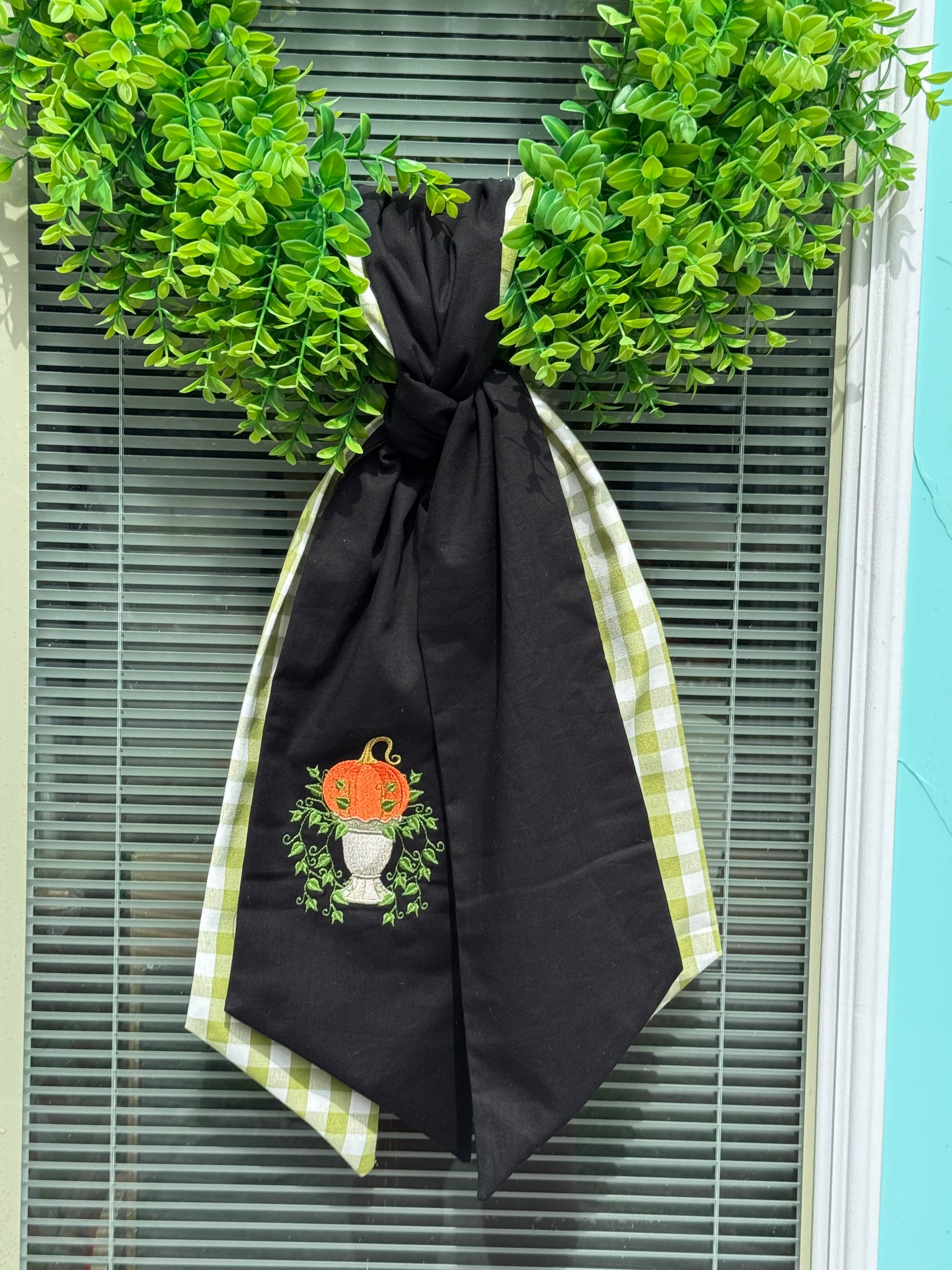 Handmade Embroidered Pumpkin Wreath Sash – Personalized Fall Décor